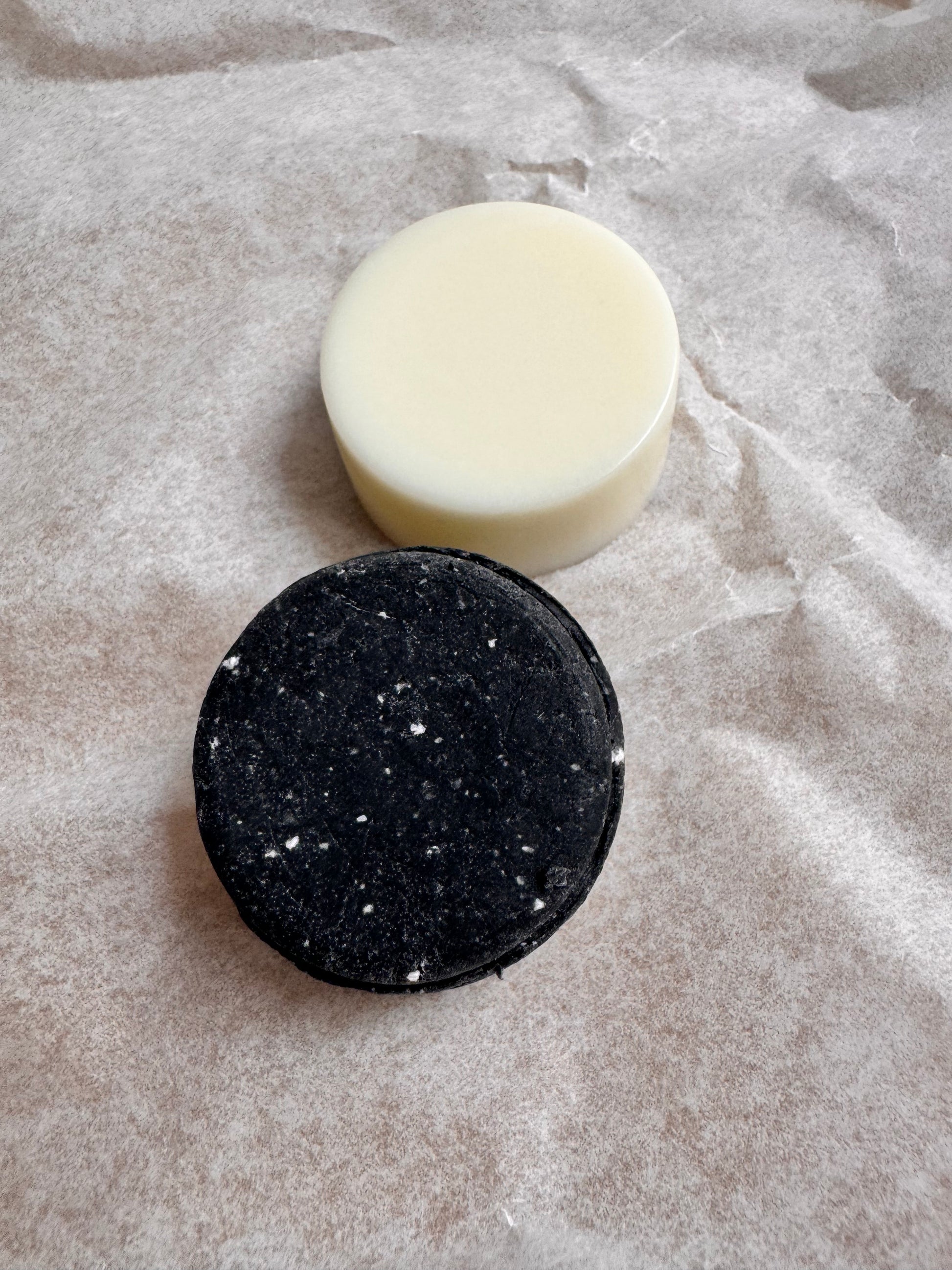 Dark sky shampoo bar med aktiv kul og hvid kaolin ler. Renser i dybden og “kilder” kølende med en duft af pebermynte og note af sort peber sammen med den klassiske duftfrie balsam.